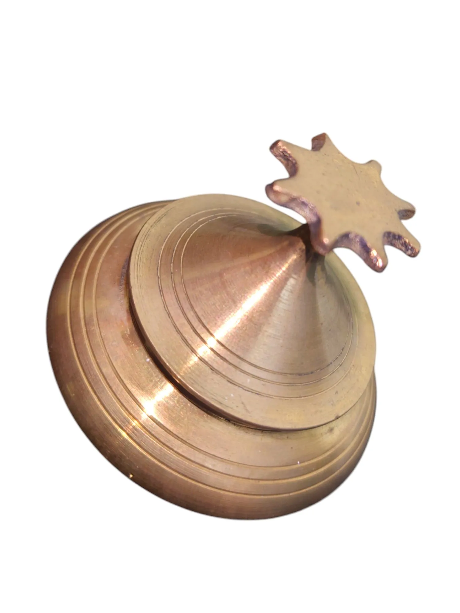 2. উপকরণের গঠন: পিতলের সিদূর দানী সাধারণত গোলাকার বা আধা গোলাকার আকারের হয় এবং এর ঢাকনা থাকে। এর উপরের অংশে একটি ছোট ছিদ্র থাকে, যা দিয়ে সিদূর বা অন্য কোনো পূজা উপকরণ রাখা হয়।